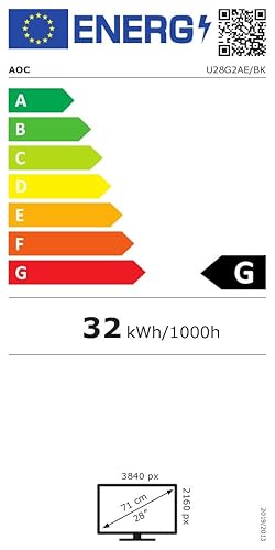 - Contenido del envío: monitor AOC U28G2AE/BK de 71,1 cm (28 pulgadas), cable de alimentación, HDMI/DisplayPort/cable de audio, CD de controlador.