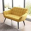 Olden, Sofa de Dos plazas, Sillon de Descanso, 2 Personas, Acabado en Tejido Mostaza y Patas Negro, Medidas: 127 cm (Largo) x 75 cm (Ancho) x 77 cm (Alto)