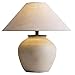 HvKvHvY Lámpara de mesa rústica de granja, moderna lámpara de mesa de cerámica blanca, lámpara de mesa estilo suroeste con pantalla de tela de lino para mesita de noche de dormitorio (grande)